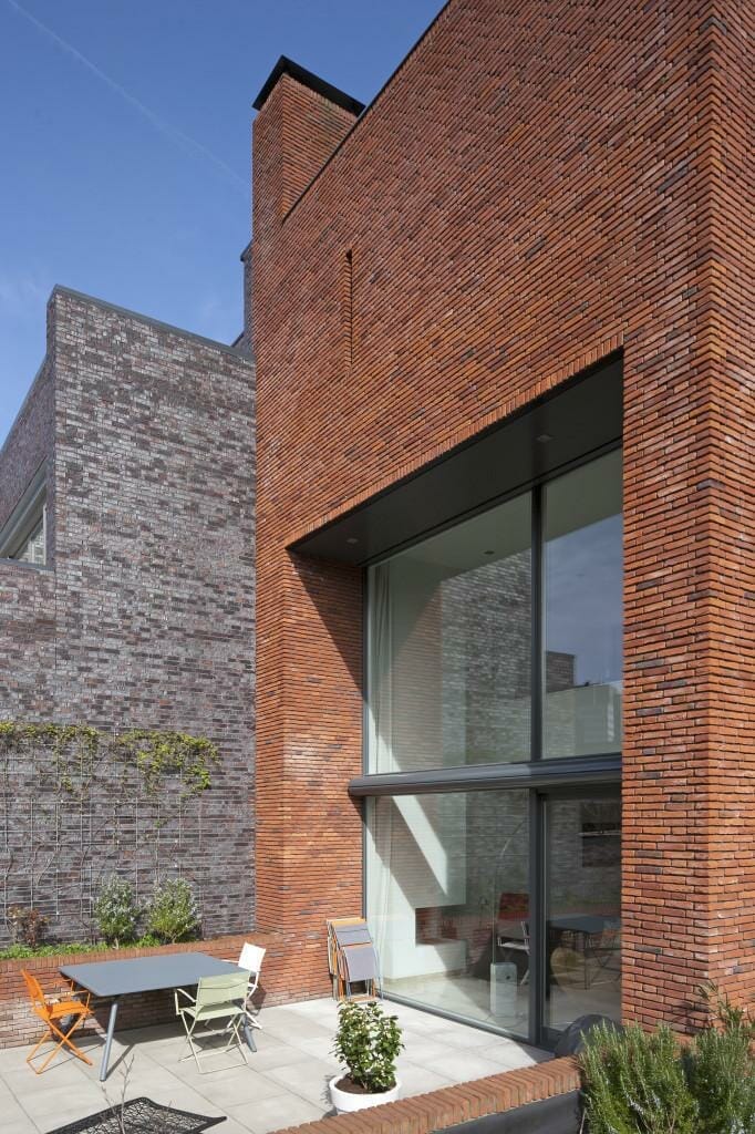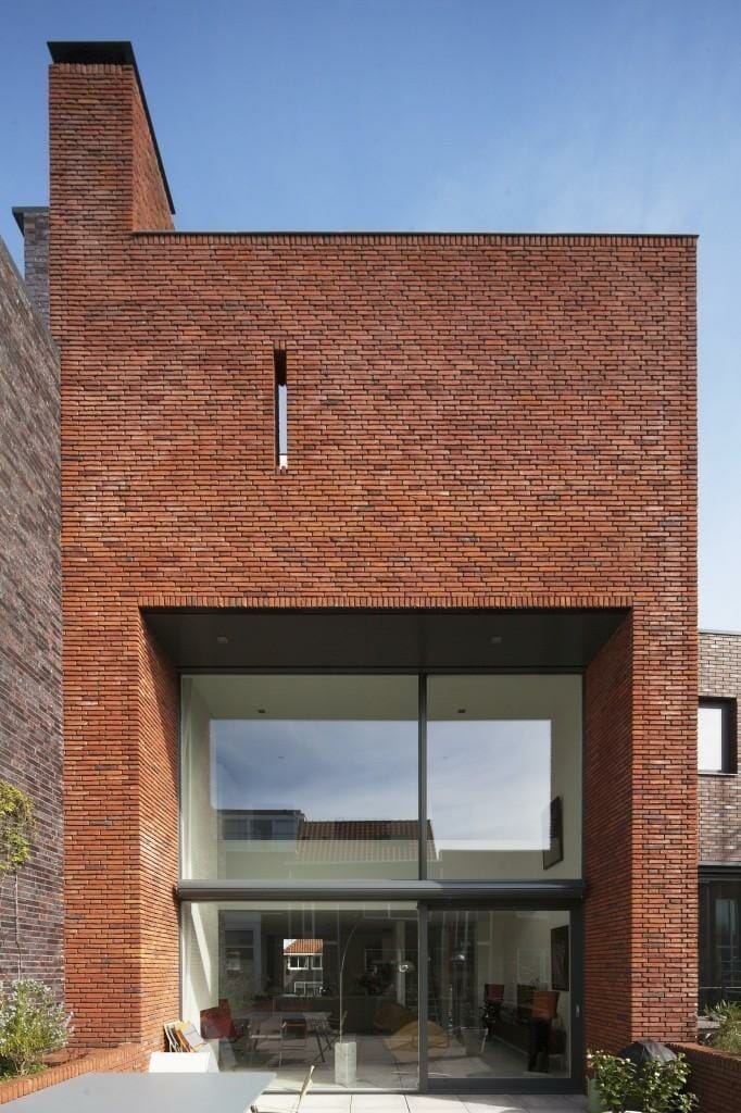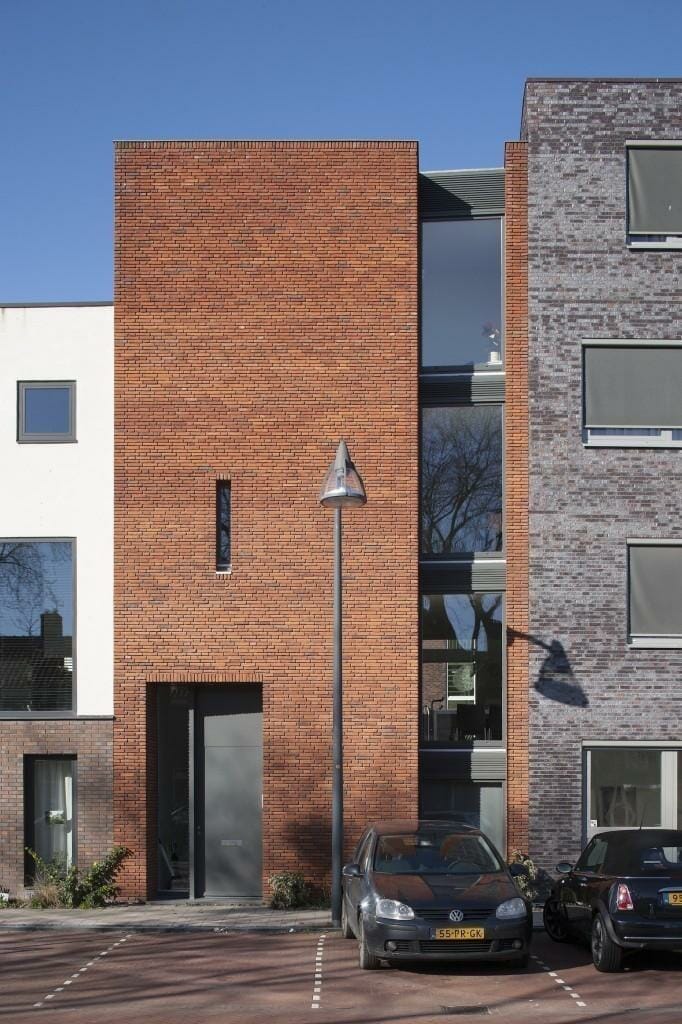 In dit ontwerp in Nieuw Leyden is gekozen voor terughoudendheid en eenvoud. De gevel bestaat, ten opzichte van de naastgelegen panden, uit een afwijkende oranjerode baksteen. Dit geeft de woning een eigen karakter. Een karakter dat wordt versterkt door het beperkte aantal openingen in de voorgevel: een entree, een spleetraam en een diepliggende strook glas over de volledige hoogte van de voorgevel. In de achtergevel bevindt zich een woningbrede, dubbel hoge pui.