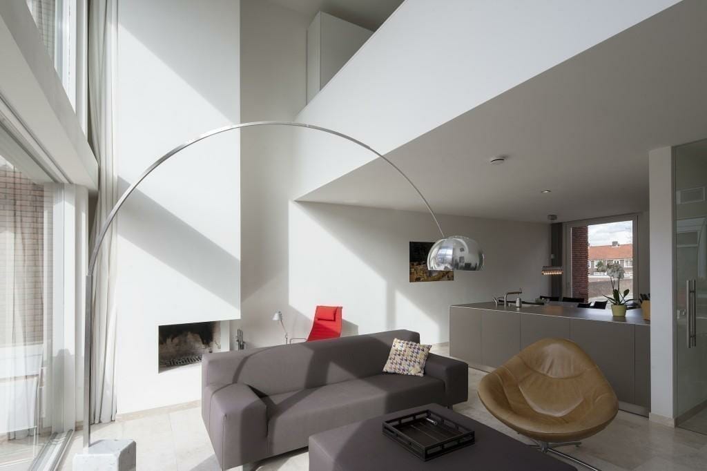 Door het gebruik van een vide zijn de woonkamer op de begane grond en de studeerkamer op de eerste verdieping met elkaar verbonden en valt het daglicht diep de woning in. Op de tweede verdieping is aan de achterzijde een patio gemaakt, waardoor met behoud van privacy in de slaapkamer en badkamer een verdiepinghoge pui geplaatst kon worden. Een verticaal spleetraam biedt vanuit de patio zicht op de tuin.
