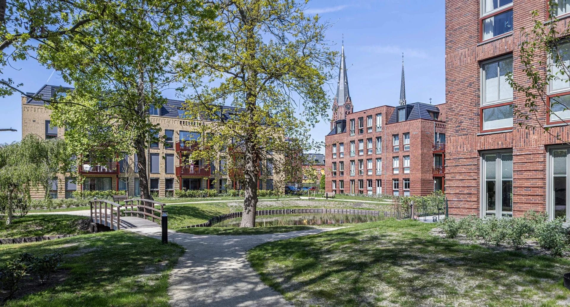 De volumes zijn zorgvuldig gesitueerd rondom een centrale vijver, met aandacht voor zichtlijnen, zonoriëntatie en privacy. Aan de straatzijde sluiten de gebouwen aan op de bestaande rooilijnen; binnen het plangebied is ruimte gevonden voor openheid, groen en visuele verbindingen met de omgeving – waaronder de nabijgelegen kerk.