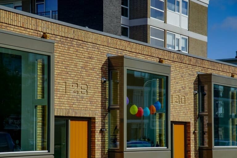 Kenmerkend voor de woningen zijn de in het oog springende erkers aan de woonkamer. Deze zijn uitkragend en abstract vormgegeven. De erkers zorgen voor dynamiek in het straatbeeld en geven uiting aan individualiteit van de woning binnen de uniforme vormgeving van de bouwblokken. Kleinschalige kunstuitingen in het metselwerk van de bestaande woonblokken hebben ons geïnspireerd om de huisnummers in het metselwerk uit te vrezen. Een ingreep die tevens bijdraagt aan de individualiteit en herkenbaarheid binnen het uniforme woonblok.