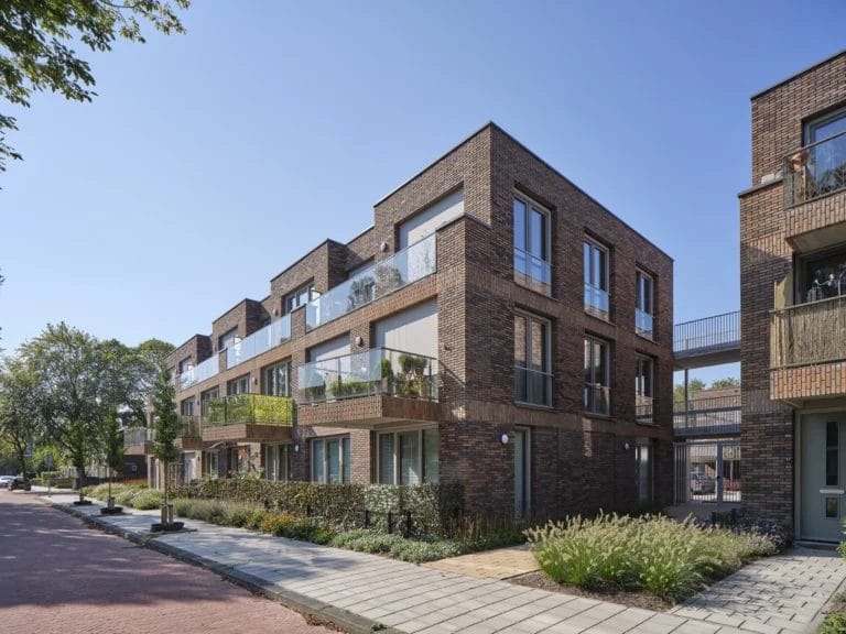 Door goed naar de bestaande straten en materialen te kijken hebben we deze woningen naadloos in de wijk kunnen passen. Zo hebben we hier met de opdrachtgever rondgelopen met borden met baksteen erop. Dit betekent niet dat de woningen zich verstoppen: door een mooie steen en rijke details hebben we echt een eigen gezicht kunnen maken. Heel lang is sociale huur het ondergeschoven kind in de architectuur geweest. Hier in Wassenaar laten we zien dat juist een coöperatie een voortrekkersrol kan spelen in de architectuur.