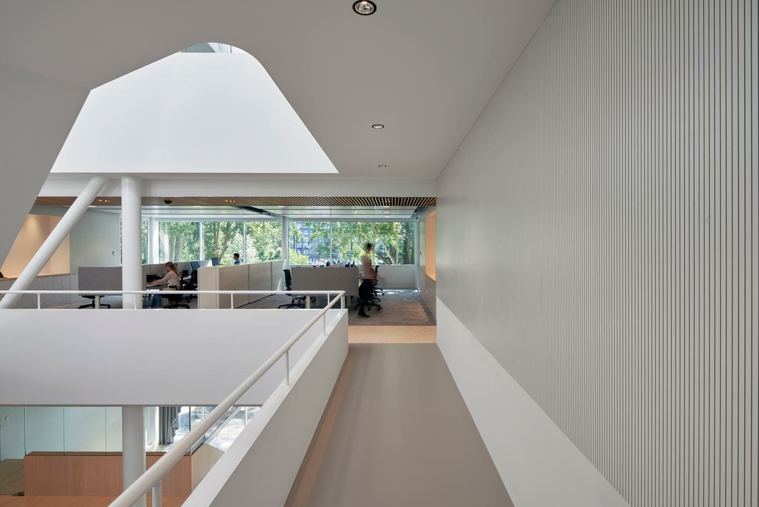 Vestig tijdens de rondleiding op 7 december je aandacht op de lange zichtlijnen, het aanwezige licht en het open karakter dat door heel Nucleus voelbaar is. En bedenk dat de architecten dit allemaal met ‘minimale middelen’ hebben weten te realiseren. “Gebouwonderdelen zoals de gevel en de staalconstructie zijn ver doorontwikkeld om ze met zo min mogelijk materiaal te kunnen uitvoeren. Het uiterlijk van het gebouw is een gepolijst resultaat van deze wijze van denken.”